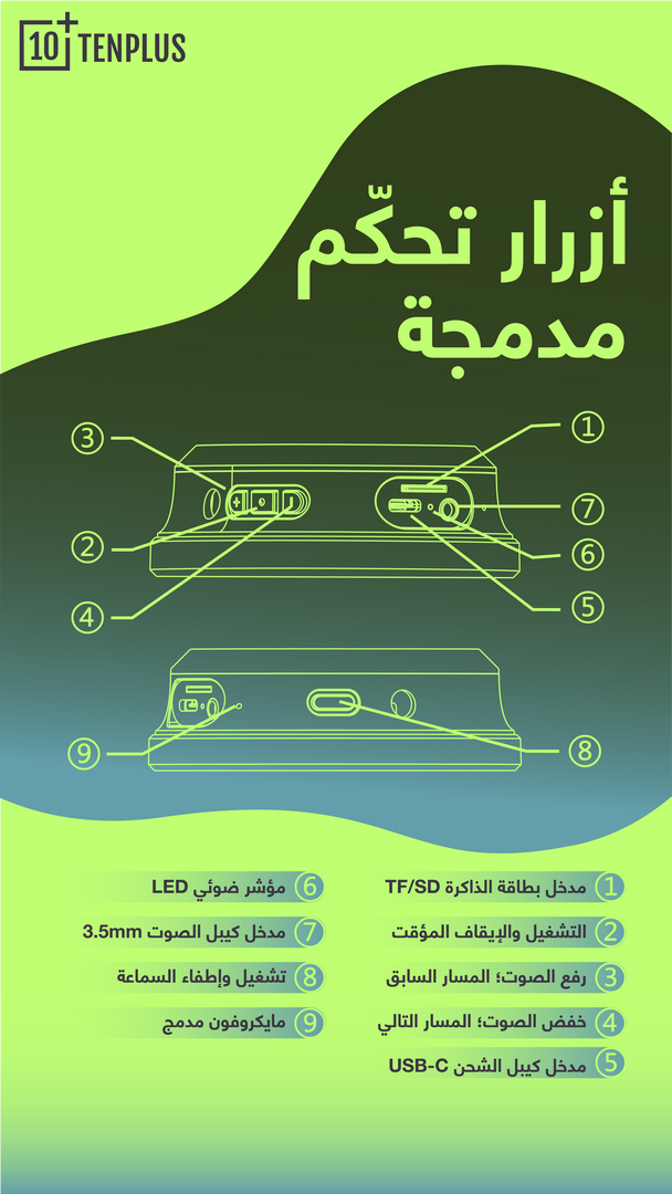 سماعة رأس لاسلكية بمكبر صوت مدمج من TENPLUS